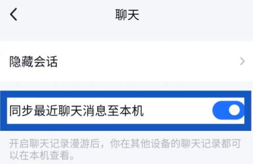 5、进入聊天选项页面,将“同步最近聊天消息至本机”设置为开启状态即可。