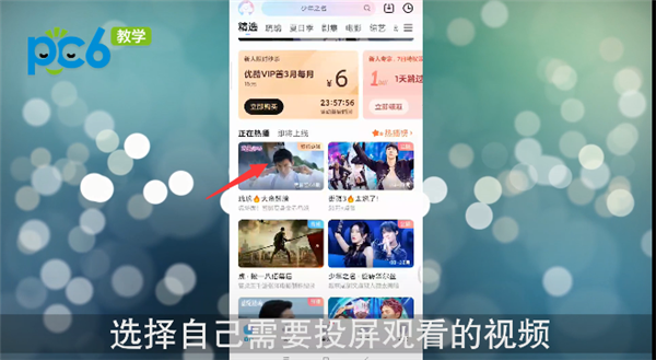 首先打开优酷视频App,选择自己需要投屏观看的视频;