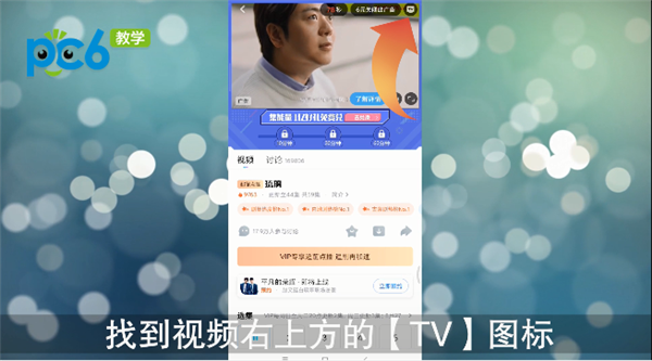 点击进行播放,找到视频右上方的【TV】图标;