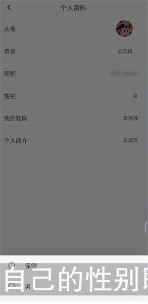 识货设置男女一共四步,用户进入账号主页,在个人资料里选择相应的性别即可设置,具体操作如下: