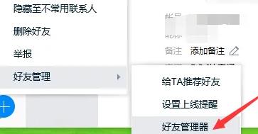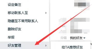 2、选择需要删除的任意一个联系人,右击选择“好友管理”,