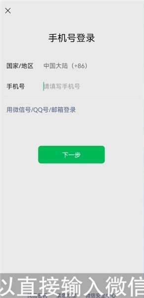 此时可以直接输入微信关联的手机号码,再输入微信密码,或使用短信验证码登录;