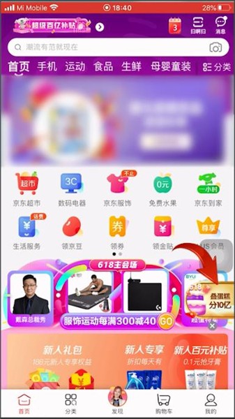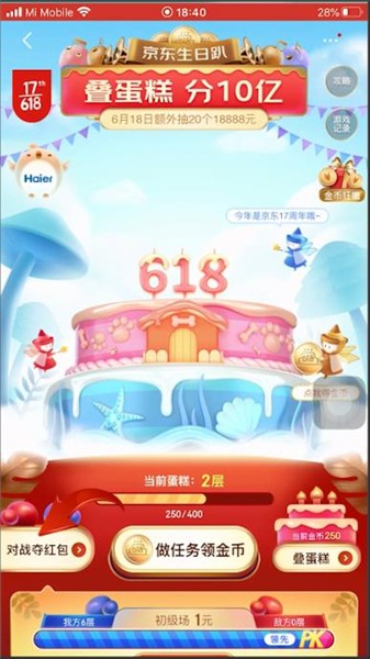 首先打开【京东】客户端,然后在首页面点击右下角的【叠蛋糕分10亿】活动,