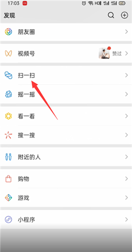 如果有保存对方的二维码名片,点击发现,点击扫一扫,
