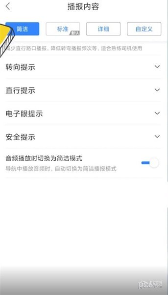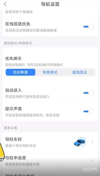 点击右上角【设置】,选择【导航设置】,点击【导航中语音】,
