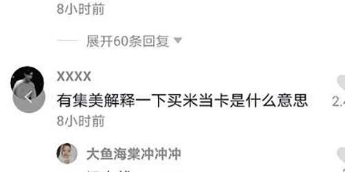 抖音买米当卡是什么意思?最近在抖音上有不少的网友在短视频评论下面看到买米当卡这句经典留言,很多的网友都不知道这个是什么意思?那么接下来小编这就为大家带来抖音买米当卡意思解释及由来。快点来看看吧!