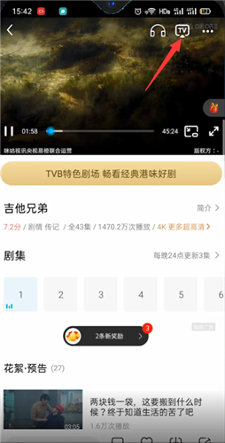 打开咪咕视频,点击选择要投屏的电视上的视频,点击右上方的tv图标,等待搜索设备,选择你的电视,即可投屏成功了。