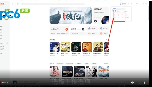 1、打开喜马拉雅点击上方的头像,选择上传选项。