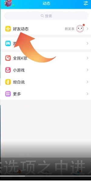 2、在动态选项之中进入好友动态然后点击菜单之中的个性装扮。