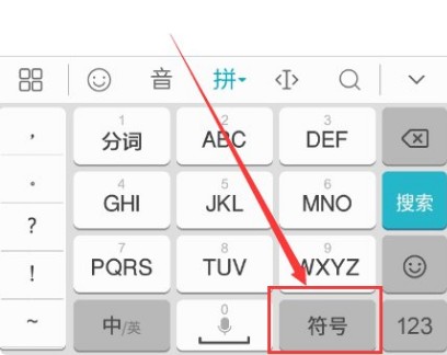 一、首先点击任意一个可输入文字的地方调出百度手机输入法,接着点击输入法上的“符号”按钮。