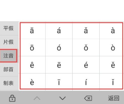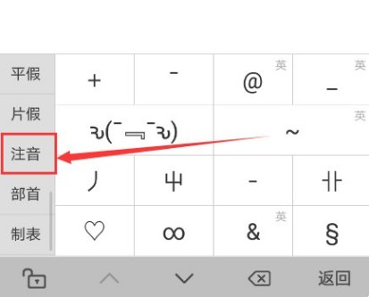 三、向上翻动并找到左侧标有“注音”的这一项,并点击打开。