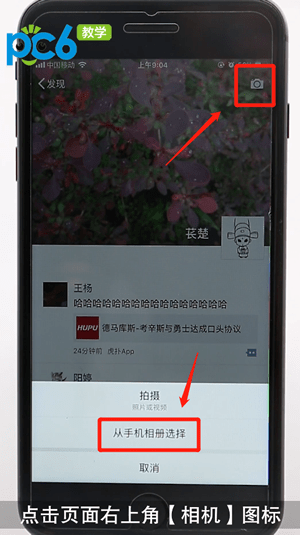 点击页面右上角【相机】图标,选择【从手机相册选择】;