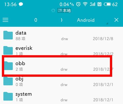 3、在完成第二步操作之后进入的界面中点击obb文件夹进入。