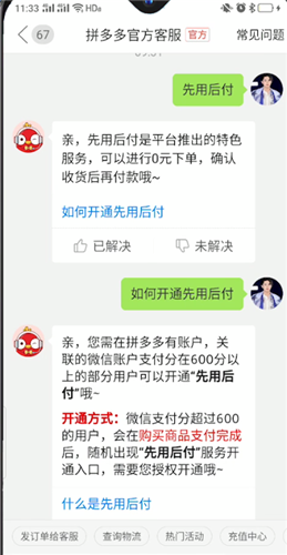 拼多多先用后付是拼多多平台推出的特色,可以进行0元下单,确认收货后再付款哦,使用先用后付您需在拼多多有账户,关联的微信账户支付分在600分以上的部分用户可以开通“先用后付”,如果需要开通先用后付,你的微信支付分超过已经600,会在购买商品支付完成后,随机出现“先用后付”服务开通入口,需要您授权开通哦,所以这个功能是随机出现的。