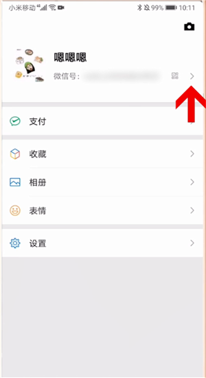 打开微信app,点击底端我选项,点击微信头像旁的三角图标,