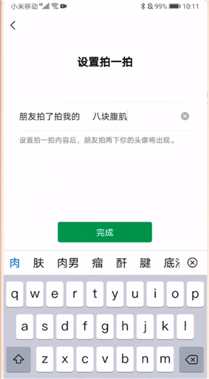 然后点击拍一拍选项,输入文字“八块腹肌”即可。