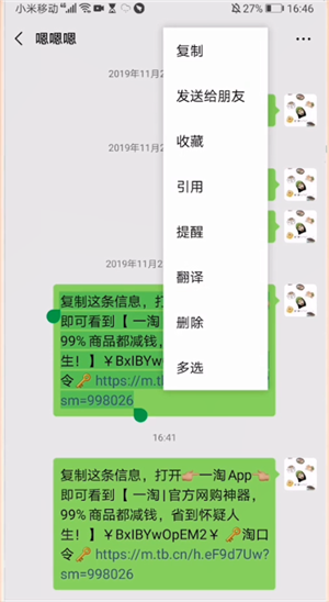 本视频是由华为mate 10 pro手机的Android9版本录制的。首先在微信中找到要复制的文字信息,然后长按要复制的文字,在弹出的菜单选项中点击复制,