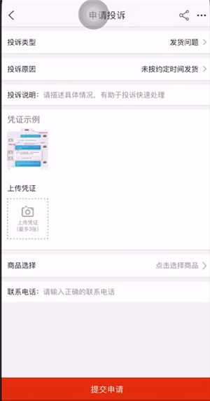 选择自己要进行投诉举报的订单点击进入,在订单信息栏下点击投诉商家,选择好投诉类型,每个类别只能发起一项投诉,进入之后填写好投诉信息,然后提交申请等待审核即可。