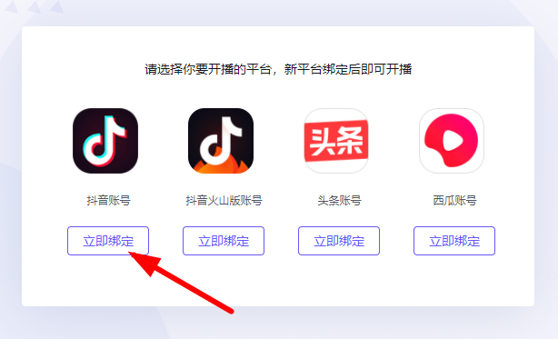 4、最后绑定“开播的平台”,直接“绑定”就可以使用。