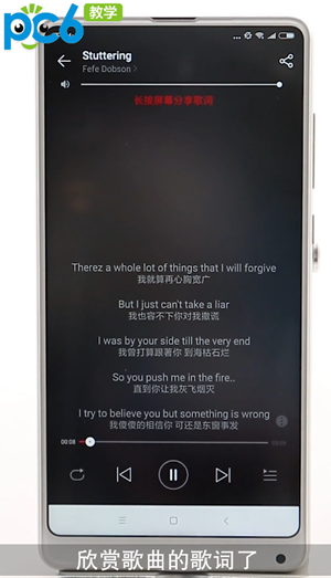 如此即可在听歌的同时欣赏歌曲的歌词了。