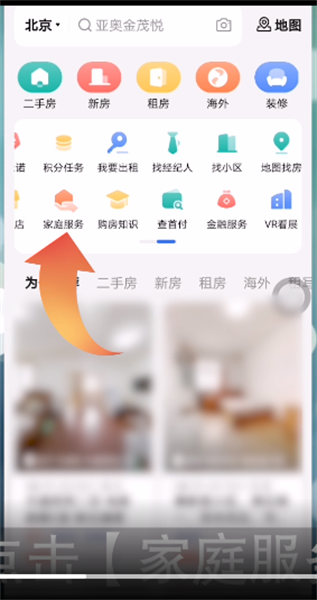 2.左滑首页界面上方的功能区,找到并点击【家庭服务】选项。