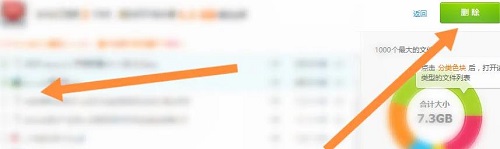 5、将需要清理的大文件勾选,点击右上角“删除”即可。
