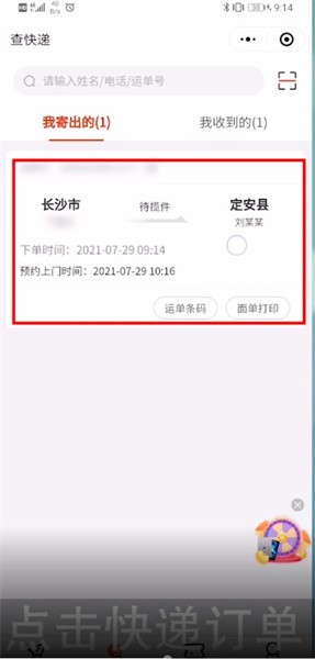 2、选择小程序页面下方的【查快递】选项,点击快递订单。
