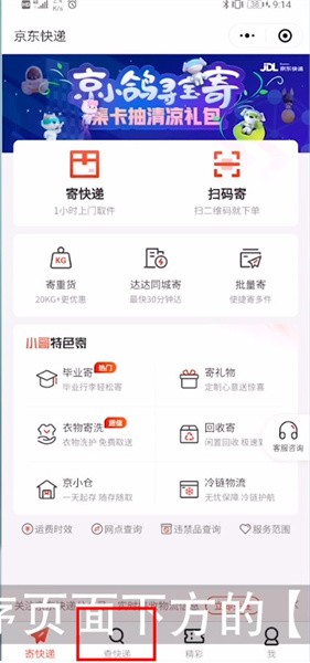 1、打开微信搜索「京东快递」小程序,点击进入。