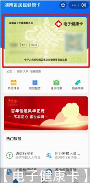 第二步:点击立即查看按钮,点击【电子健康卡】位置,