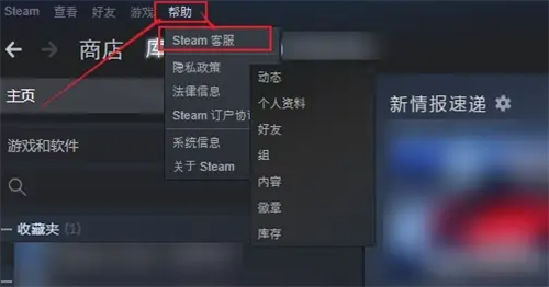 1、打开软件以后,点击上面的“帮助”。“steam客服”