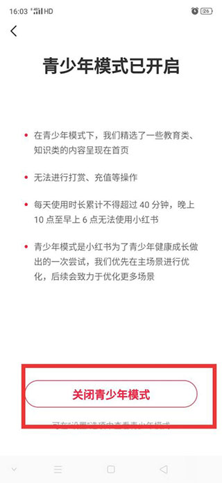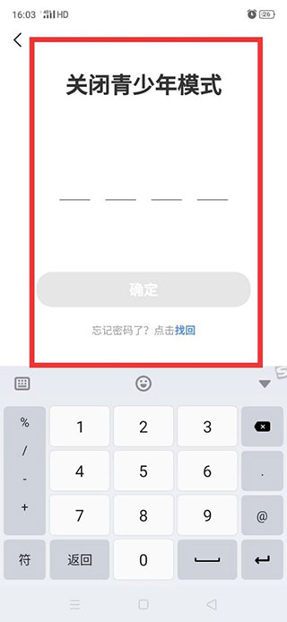 5、点击后,输入密码,然后点击【确定】即可关闭小红书的青少年模式。