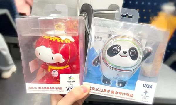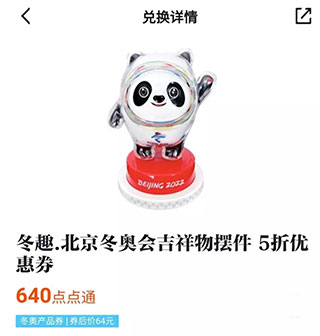 使用冬奥信用卡可以有5倍积分,积分换冰墩墩钥匙扣/玩偶/书签/帆布包等周边。
