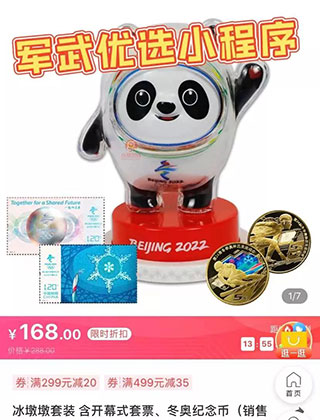 十三、军武优选-小程序冰墩墩套装——含冰墩墩、开幕式套票、东奥纪念币