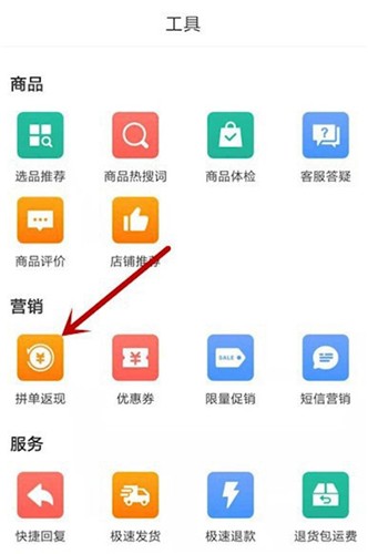 在营销板块找到拼单返现。