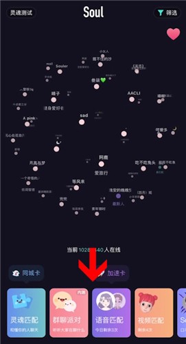 测试之后在主页可以进行好友匹配,包括灵魂匹配、语音匹配、视频匹配等,