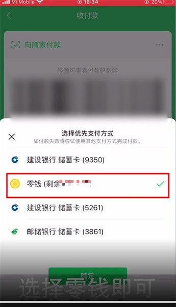 4、在【优先选择的支付方式】菜单中,选择零钱即可。