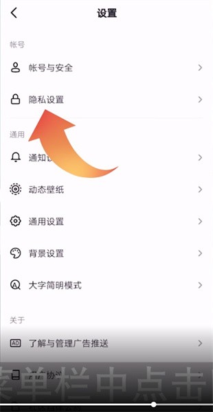 3、点击设置,随后在菜单栏中点击隐私设置;