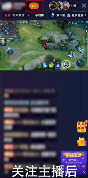 首先打开【快手】客户端,然后进入一个直播页面,接着点击上方【关注】按钮,