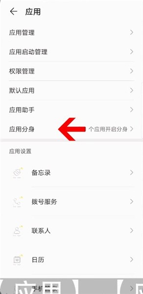 首先打开华为手机【设置】,然后下拉页面点击【应用】选项,接着点击【 应用分身】,
