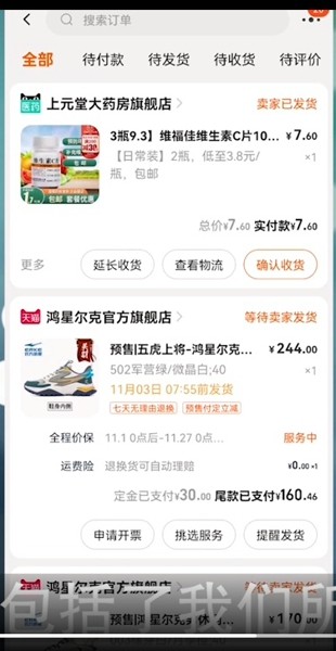 3、在订单之中选择全部选项,然后即可查看我们的淘宝账单明细。