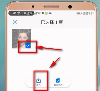 4.最后在相册中选择你要加密的图片,点击【移入】即可