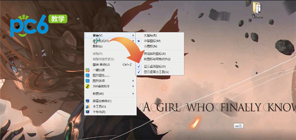 将“显示桌面图标”前面的勾号去掉即可隐藏图标。