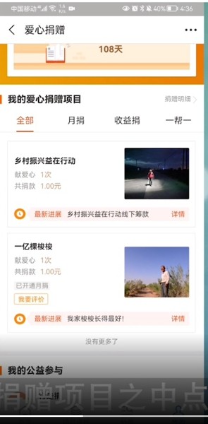 3、进入菜单之中的我的选项,在我的爱心捐赠项目之中点击捐赠项目。