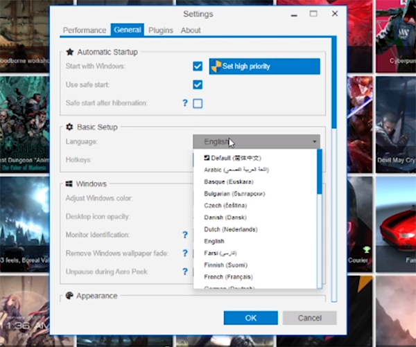 1.视频中演示以英文为例展示如何改变软件语言,其他语言的设置方法也和英文相同。在软件主页面中点击页面上方的setting进入软件的设置页面,在设置页面中可以选择壁纸软件的基本设置。