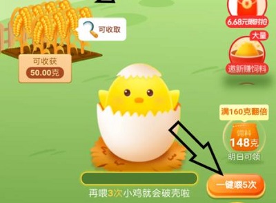 3、之后可以进入喂鸡的界面,点击“一键喂5次”。
