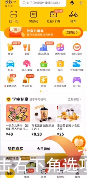 1、打开美团app,随后点击右下角选项:我的;