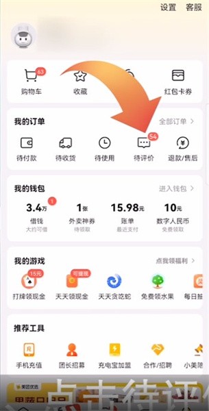 2、点击待评价,接着选择该骑手配送的订单;
