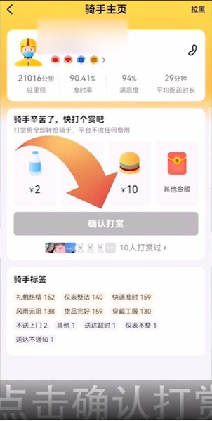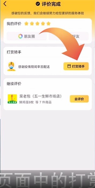 4、评价完成后,点击页面中的打赏骑手;