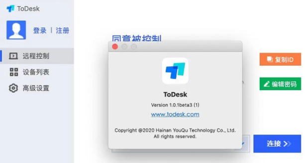 2、todesk的远程控制方法很简单,只需要在两个设备里面都下载安装好软件,再在主控软件上输入被控软件的设备码和临时密码就可以了。