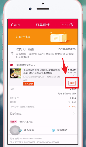 进入【订单】页面,选择退款的商品;